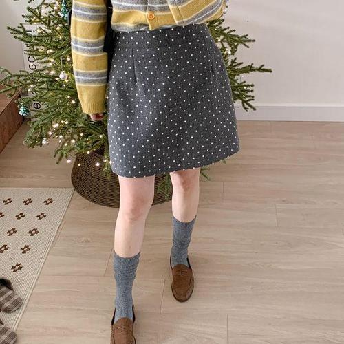 [행복여] 멜리 도트 땡땡이 모직 텍스쳐 밴딩 스커트