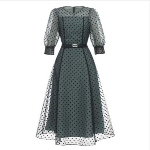 옷자락 / 여성 가을시즌 시스루 쉬폰 리본 캉캉 도트 롱드레스