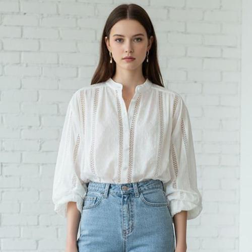 포라리 세이브존05 시어서커 도트 텍스처 차이나카라 블라우스 SB25051