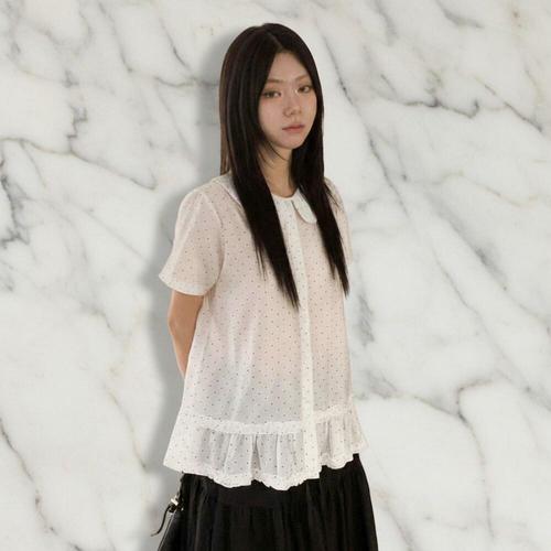 [신상오픈런]여성 도트 프릴 밑단 반팔 블라우스 피터팬 카라