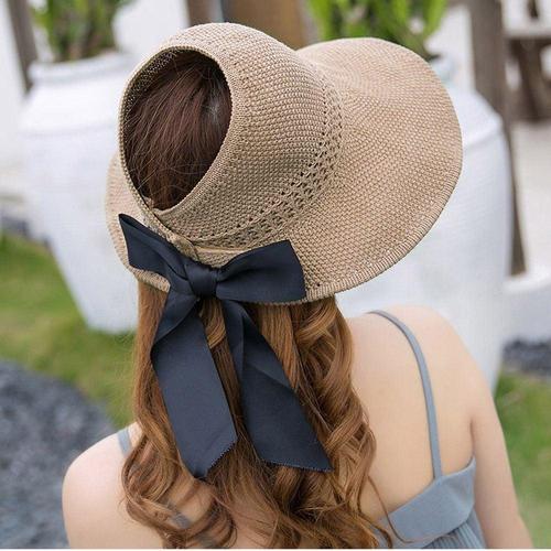 시크벤 리본 밀짚 돌돌이 썬캡 여성 햇빛 자외선차단 라탄 라피아햇