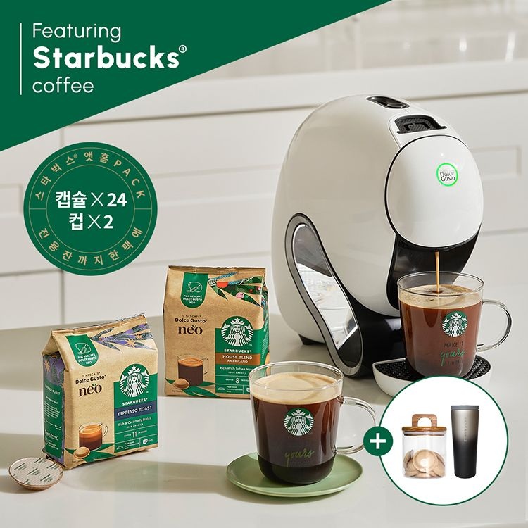 [텀블러] NEW 돌체구스토 네오 스타벅스 앳홈 팩 캡슐 커피머신(캡슐2box + 머그2개 포함) +보관함 + 스타벅스 시그니처 웬디텀블러 + 그린머그