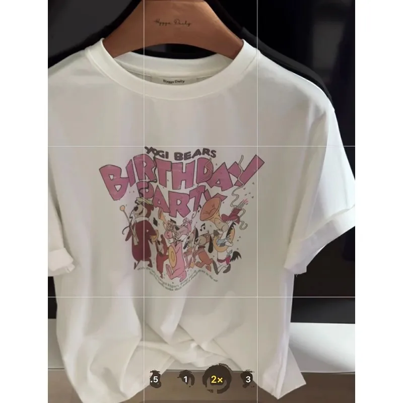 루즈핏 반팔 티셔츠 여성용 라운드넥 프린트 캐주얼 만화 글자 동대문 2025 신상 여름 스타일 면 혼방