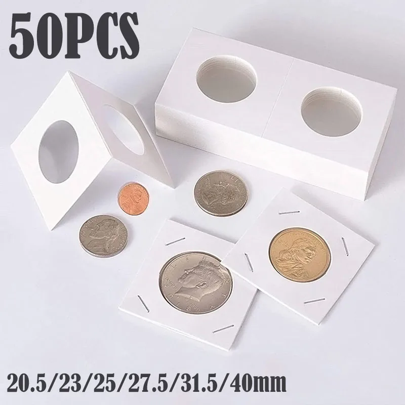 50PCS 정사각형 골판지 케이스 동전 앨범 기념 동전 종이 보호 클립 동전 용품 보관 20.5/23/25/27.5/31.5/40mm