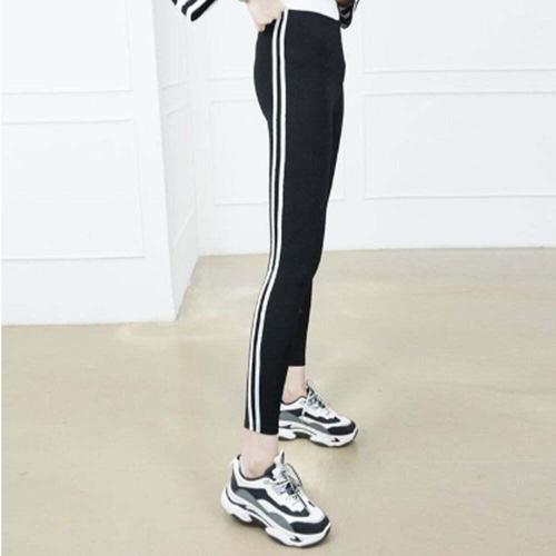 여성 두줄 라인 허리 밴딩 스키니 트레이닝 팬츠 레깅스
