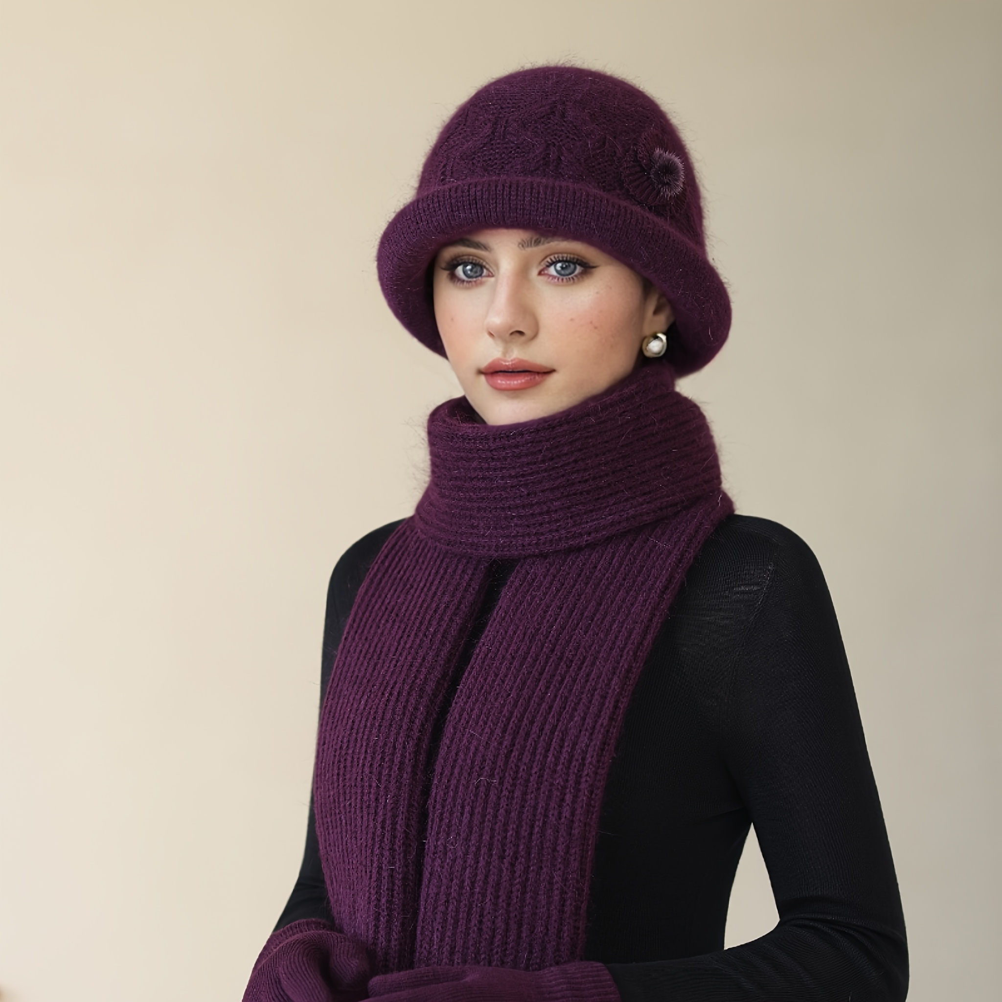 (시즌off 특가할인) 시즈올 여성 방울 니트캡모자 넥워머 세트 겨울 골프 등산 방한 비니 모자