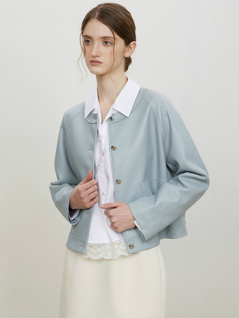 [듀엘] [Exclusive] 라운드넥 페이크 레더 자켓 BL_D261PSG702