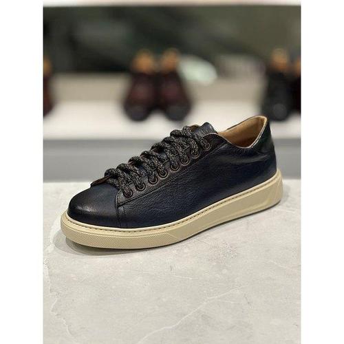 신사야 소가죽 노매듭 밴딩끈 캐주얼 스니커즈 24S029