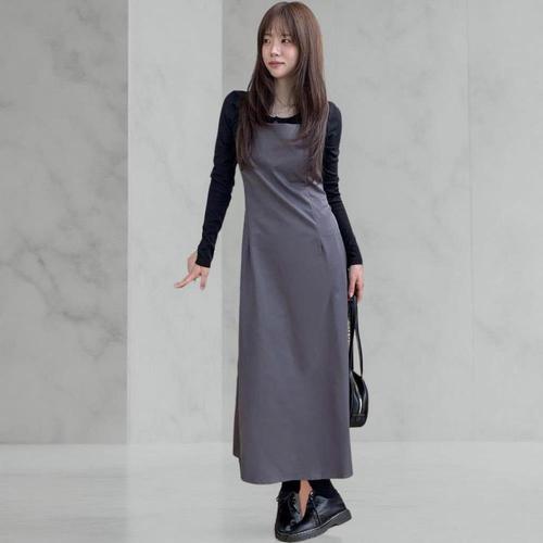 [다잇템]여성 롱 스트랩 울혼합 코르셋 후레아 드레스