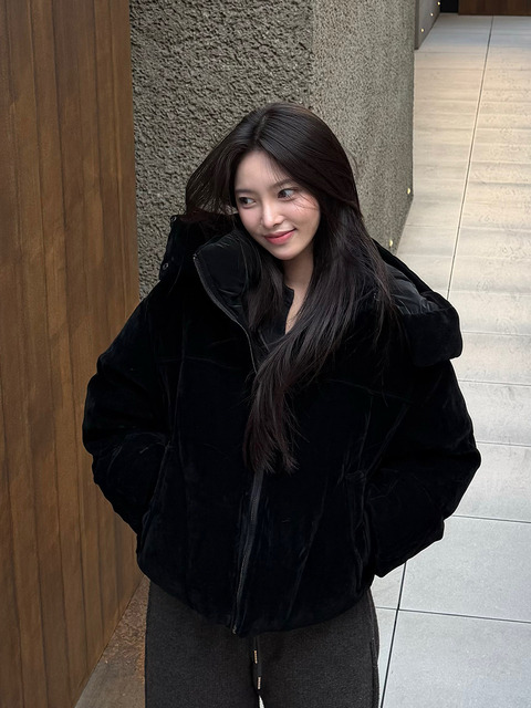 [씨씨콜렉트] 벨벳 후디드 숏 구스 다운 BK_C254PSG804