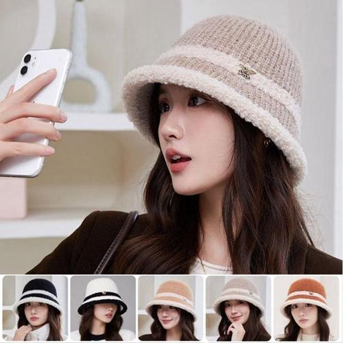 [룽스]여성겨울모자 배색 예쁜 니트 버킷햇 모자