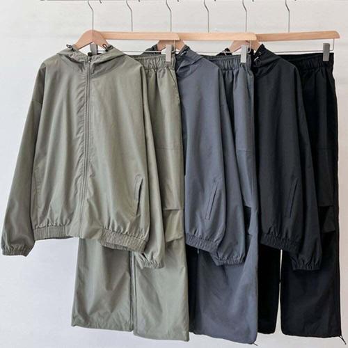 남녀공용 간절기 바람막이 후드 집업 자켓 밴딩 바지 세트 아웃도어 등산복 운동복