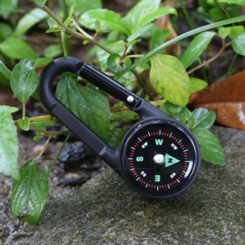 산악 캠핑 등산 낚시 아웃도어 온도계 나침반 카라비너 고리 블랙