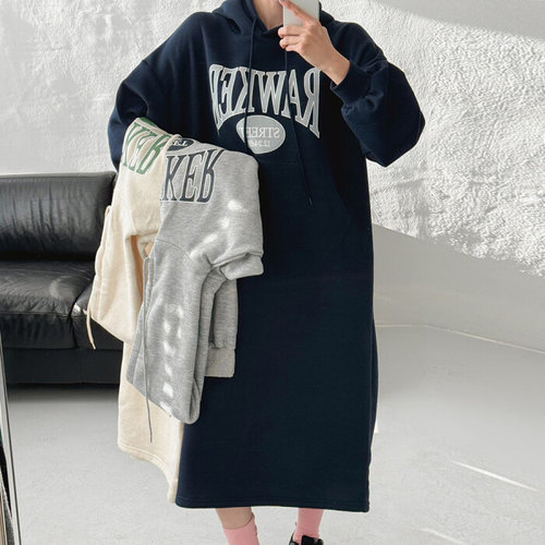 [옷자락] 여자 기모후드 빅사이즈 레터링 휘뚜루 등원룩 롱원피스