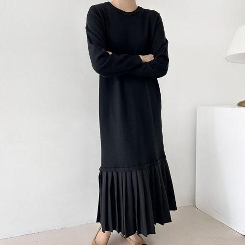[다잇템][다잇템] 여자 믹스 민무늬 스웨터 FW 등원룩 아코디언 롱원피스_23915969_588872