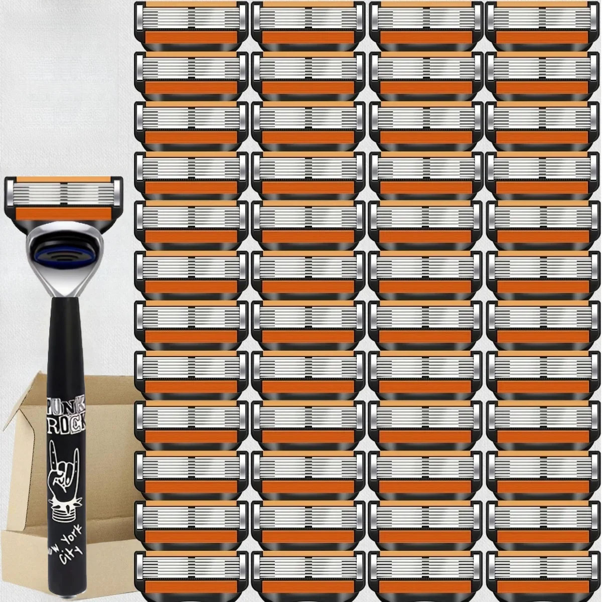 고품질 남성용 안전 면도기 6중 독일산 스테인리스 면도날 수동 면도기 교체용 커터 헤드