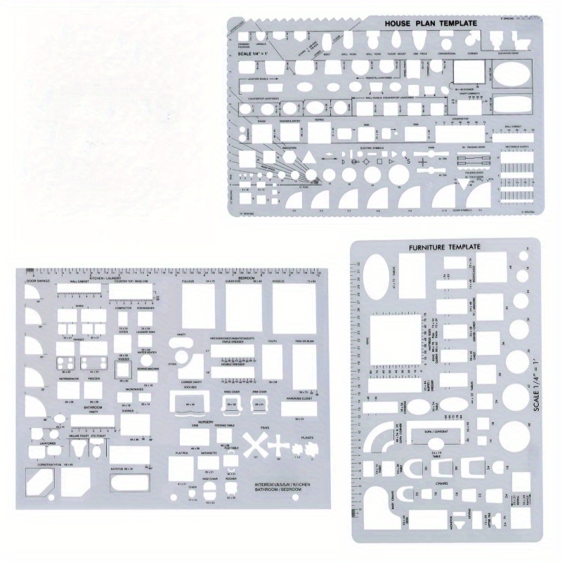 TEMU 건축용 하우스 플랜, 인테리어 디자인 및 가구 템플릿, 드래프팅 도구 및 눈금자 모양 3개 세트
