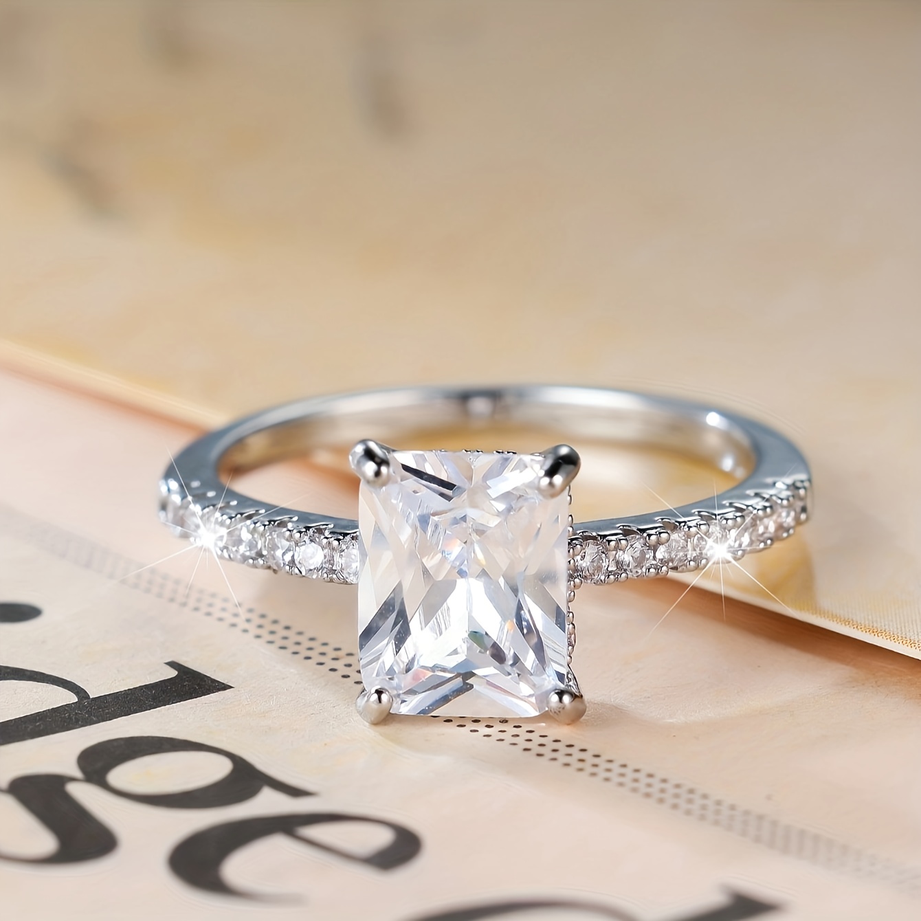TEMU 정교한 직사각형 컷 화이트 합성 지르코니아 반지 - 결혼식, 약혼, 기념일 및 일상 착용에 완벽