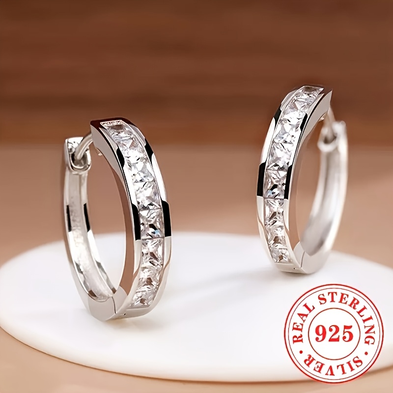 TEMU 925 실버 기하학적 여성용 귀걸이, 유니크한 디자인과 합성 지르코니아, 클래식하고 다재다능한 스타일 액세서리
