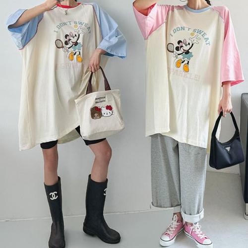 H스타일(LH)디즈니스파이나그랑티 봄 여성 디즈니 티셔츠 롱티 오버핏 루즈핏 빅사이즈 반팔