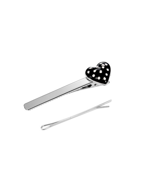 [핑크파인애플] [2EA 1SET] POLKA DOT RIBBON HAIRPIN_BLACK