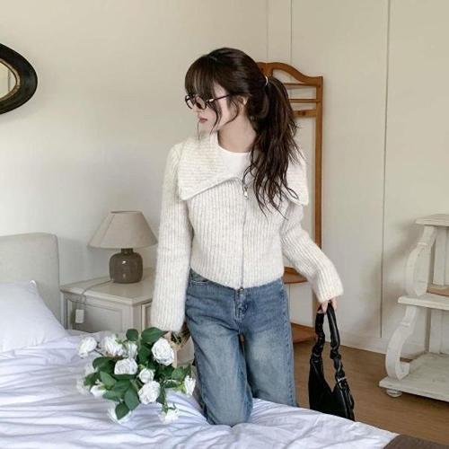 [다잇템]여성 폴라넥 뜨개질 스웨터 울터치 집업 가디건