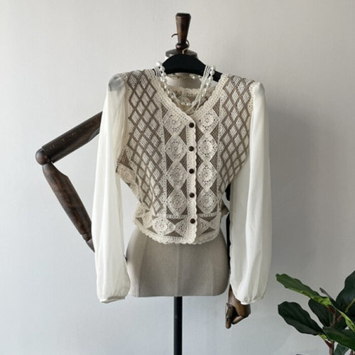 [모노무드]모노무드 조끼 베이지 크로셰 가디건 여름뜨개조끼 여성조끼 여성 뜨개