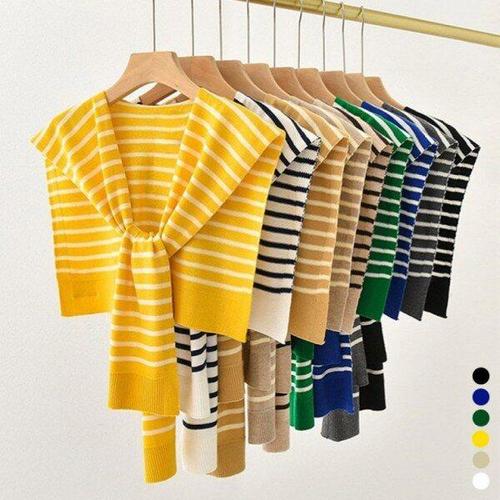 [모노무드]MNO 울 캐주얼 라인패턴 뜨개탑 어깨 숄더니트가디건