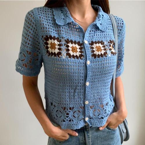 여성 특이한 손뜨개 뜨개질 가디건 뜨개 크롭 숏 니트