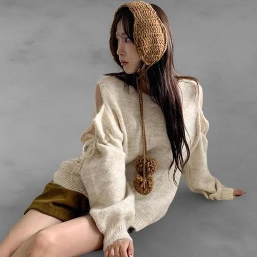 TEMU 우아한 니트 끈 달린 비니, 부드러운 플러시 울 겨울 따뜻한 모자, 여성용, 도시 테마, 데이 선물|모자
