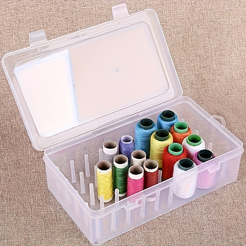 TEMU 뚜껑이 있는 투명 플라스틱 스풀 정리함 - 재봉사실, 실, 공예용품을 위한 다용도 수납함, 내구성 있는 흰색 패브릭 케이스, 재봉틀, 여행 및 공예실 정리용, 공예실 수납|투명 보관함|내구성 있는 플라스틱 상자, 재봉틀 액세서리, 보관 상자 및 정리함