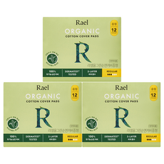 라엘 올그린 유기농 순면 생리대 날개형, 중형, 12개입, 3개
