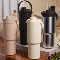 TEMU 스테인리스 스틸 컵, 세 가지 다른 뚜껑이 있는 한 컵, 기업 선물로 적합, 선물 상자에 담겨, 세 개의 작은 물 컵과 함께 제공됩니다.