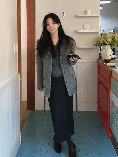 [라메레이] 하이넥 버튼 라쿤 가디건