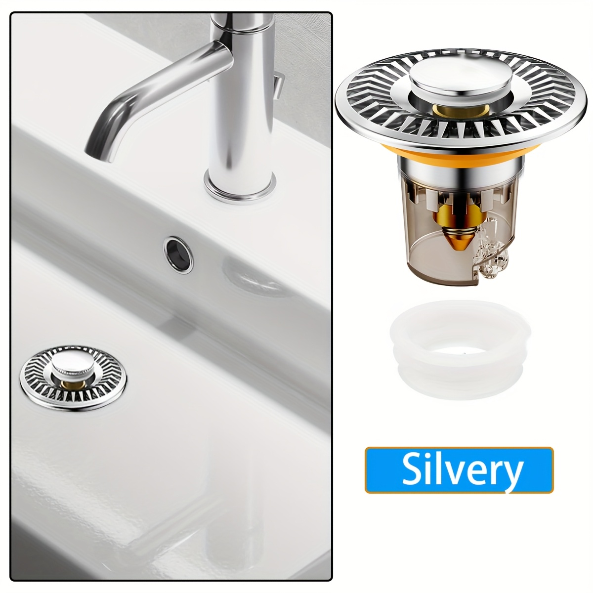 TEMU 1개 스테인리스 세면대, 누름식 리본 코어, 냄새 및 누수 방지 설계, 범용 욕실 사용에 적합한 코어 배수 액세서리 포함