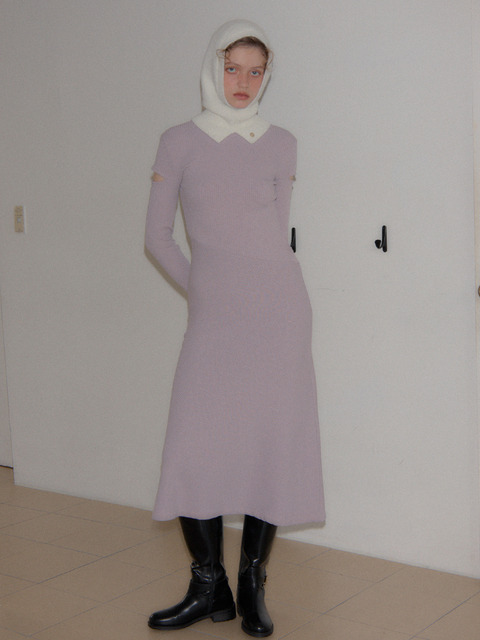 [살롱드욘] 하이넥 컷 아웃 롱 드레스_ 라벤더