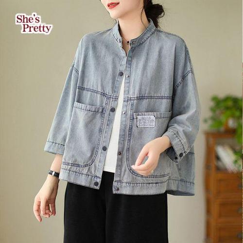 [쉬즈프리티]라벨링스텐카라데님자켓