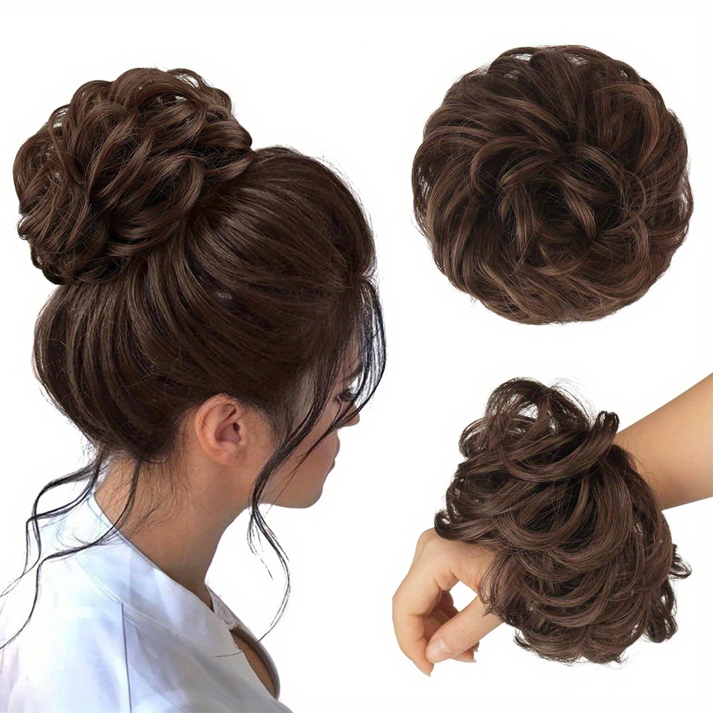TEMU 2개 여성용 실인형 머리 스타일링 번 헤어피스 - 두꺼운 곱슬 웨이브 올림 스타일 번, 곱창 밴드 포함, 내추럴 브라운블론/레드/오므레, 볼륨 포니테일 & 치니언 헤어 익스텐션, 데일리 & 특별한 행사용, 이벤트 헤어피스, 안정적인 착용감 헤어피스