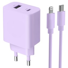 모잇 PD25W 2포트 PPS 초고속충전기 + 8핀 라이트닝 아이폰 케이블 1.3m, 퍼플, 1세트