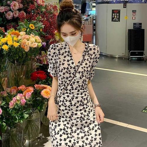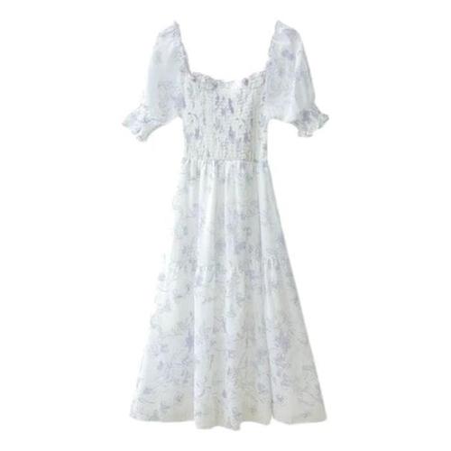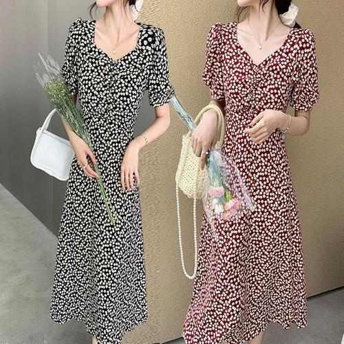 [라일리여성의류] Rly 여름 쉬폰 꽃무늬 롱 원피스 반팔 여성 치마