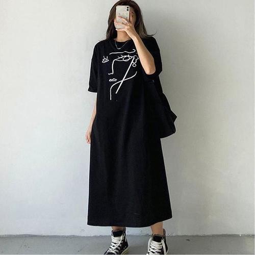 [라일리여성의류] Rly 프린팅 원피스 루즈핏 여자 롱 데일리 얼굴 반팔
