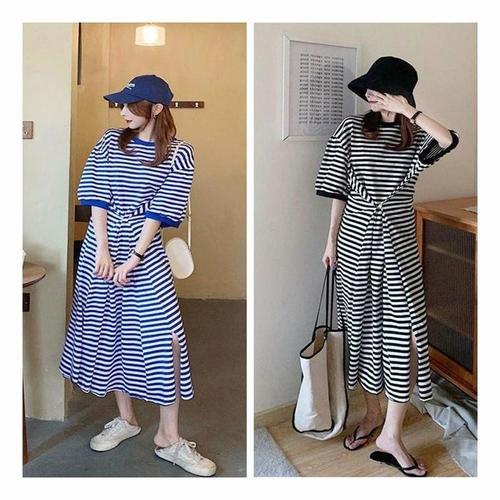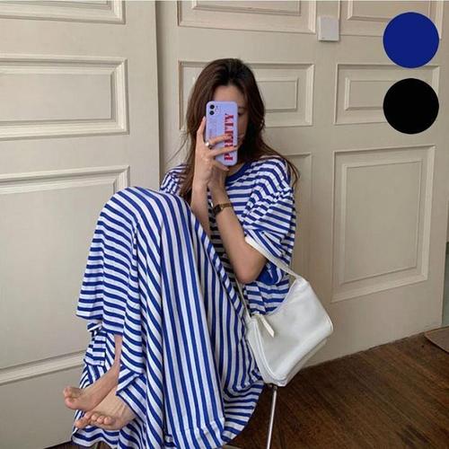 [라일리여성의류] Rly 편한 원피스 단가라 A라인 스트라이프 반팔 여름