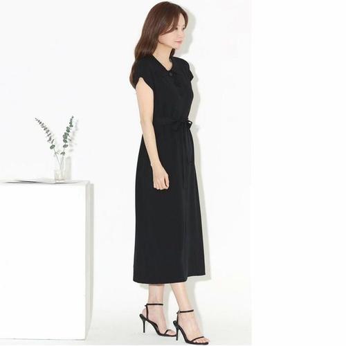 [라일리여성의류] Rly 반팔 하객룩 원피스 여자 카라 블랙 A라인 핀턱