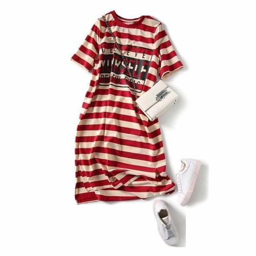 [라일리여성의류] Rly 롱 여자 반팔 단가라 등원패션 편한 원피스 루즈