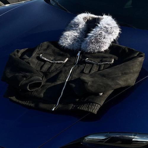 [원스톤]원스톤 클래식 퍼 벨트 스웨이드 점퍼 1color 라쿤 밍크 겨울 신상 벨트 남녀공용 크롭 숏