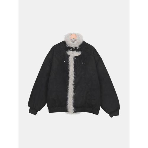 고퀄리티 발열 라쿤양털 스티치 후드 절개 점퍼 크롭 패딩