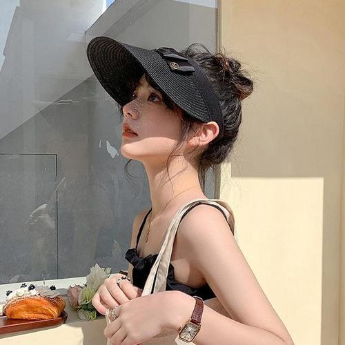 [XBFIK660_56]차단 여성 햇빛가리개 라탄 썬캡 블랙