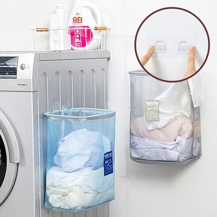 엄지척 빨래바구니 벽걸이 보관함 접이식 세탁 라탄 바구니