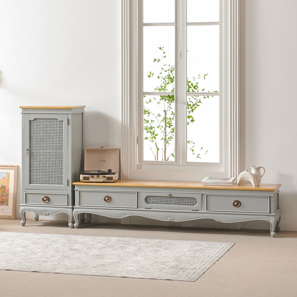 미엘 그레이 라탄 장식장 와이드 거실장 세트