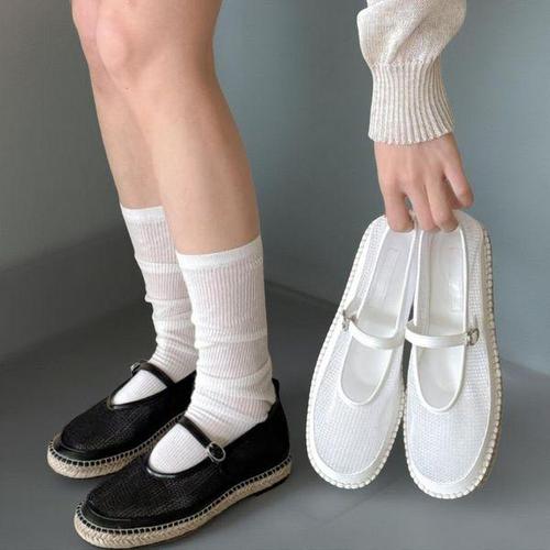 [신상오픈런]여성용 통기성 메리제인 라탄 플랫 슈즈